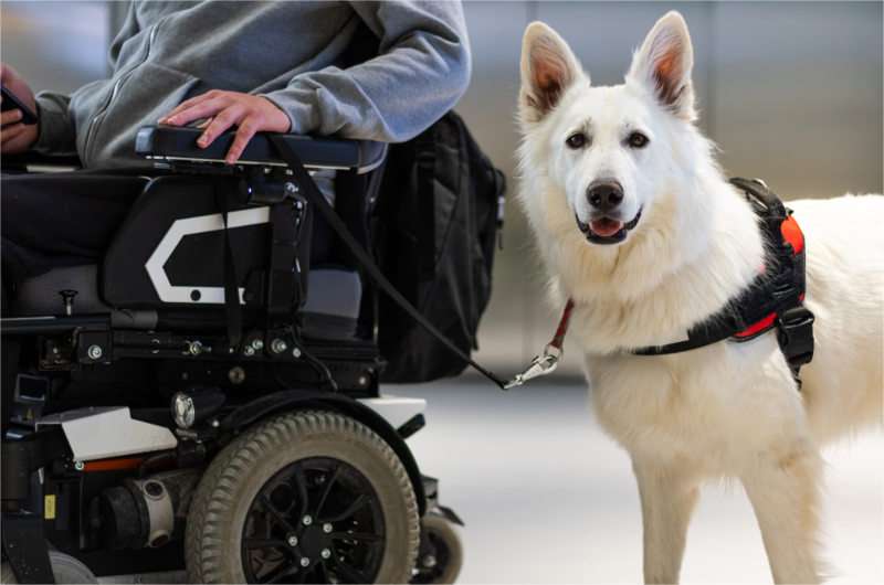 A trained service dog is taught to perform intricate tasks with precision, reliability, and adaptability.